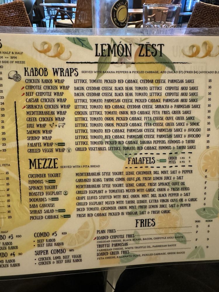 Lemón Zëst - Northridge is a cozy cafe offering a variety of Mediterranean dishes with options for vegans and vegetarians. Located at 9310 Reseda Blvd in Northridge, CA, this restaurant provides a romantic and quiet atmosphere perfect for a dinner date or group gathering. The menu features kabob entrees like Baby Lamb Chops and Chipotle Chicken Kabob, as well as lunch specials and combo kabobs. Customers have praised the delicious and high-quality food, generous portions, and attentive service. The ambiance is described as beautiful and spacious, making it a great spot for any occasion. Lemón Zëst - Northridge is a must-visit for those looking for fresh, flavorful Mediterranean cuisine in a welcoming setting.